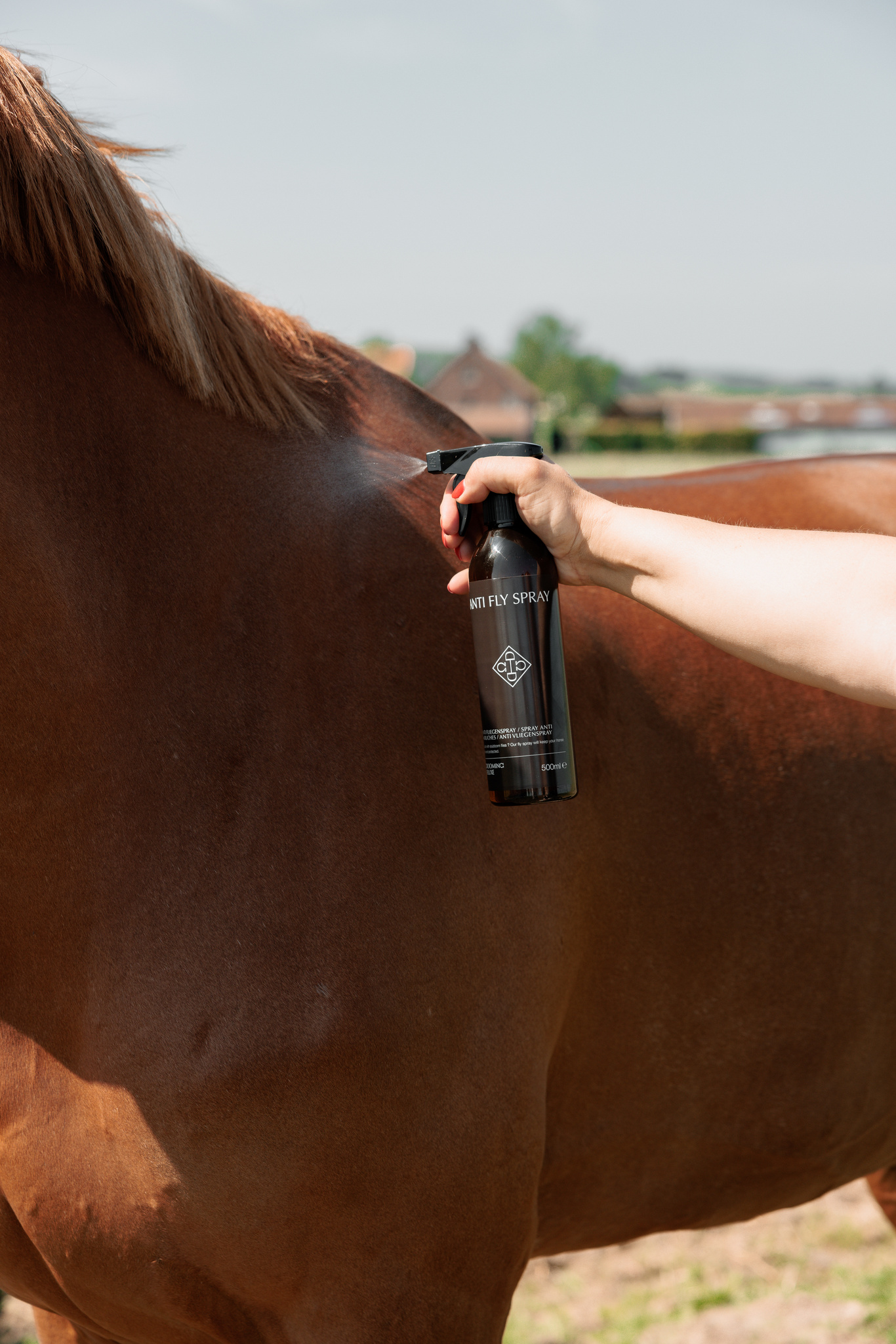 Kizárólag állatokon alkalmazható. Tartsa a spray-t 20-30 cm távolságra a ló bőrétől. Egyenletesen vigye fel a testre, kerülve a szem és a nyálkahártyával való közvetlen érintkezést.