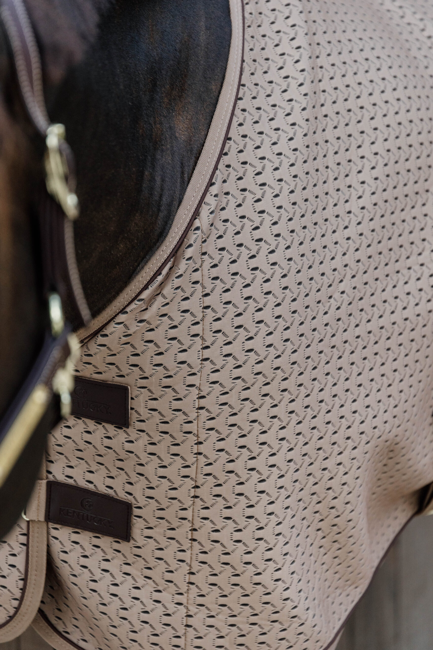 A Kentucky takarót úgy tervezték, hogy testhezálló legyen, teljes mértékben lekövetve a ló anatómiai formáját. Első részén dupla csattal záródik, kettő keresztpánttal rendelkezik, melyek vegán bőr betétekkel lettek megerősítve. A farokpánt levehető.
