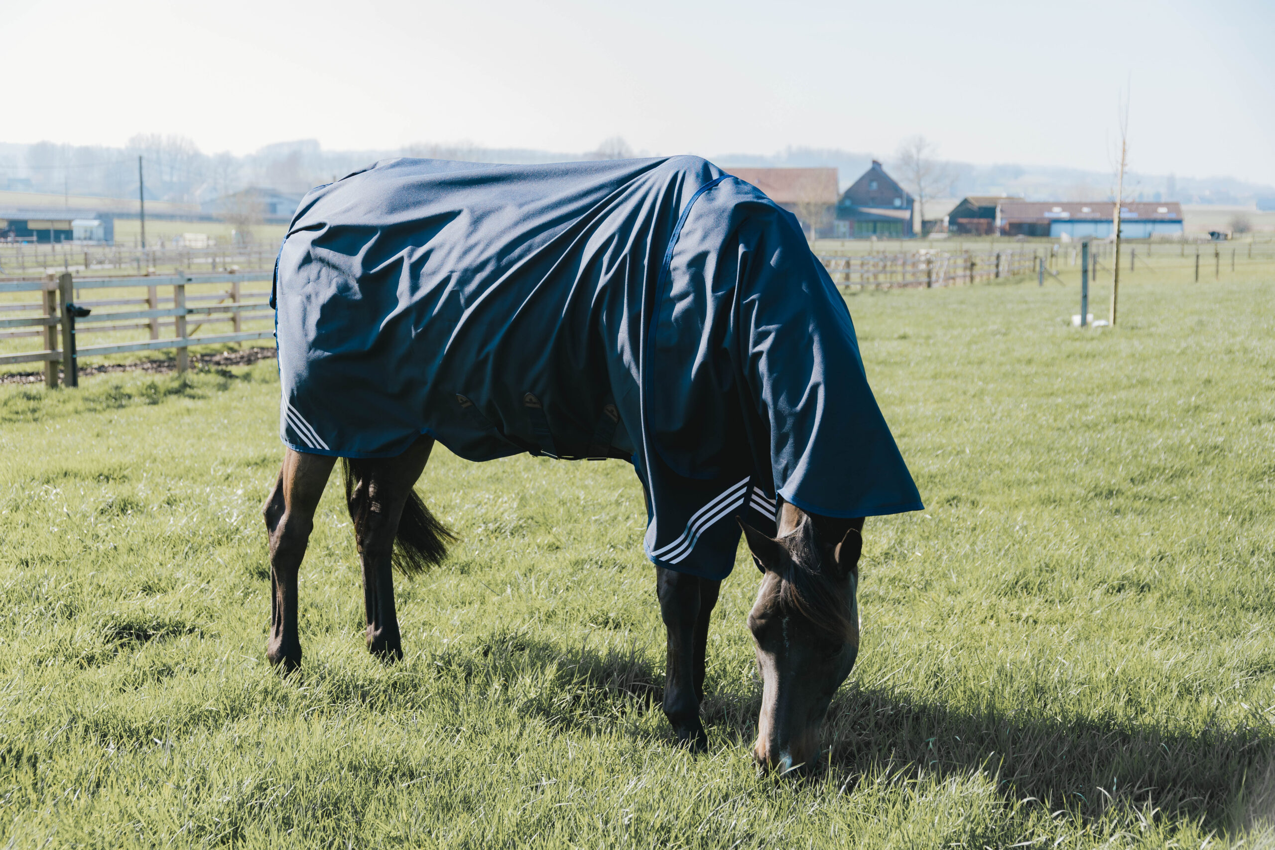 Külseje 1200D ripstop poliészter anyagból készült, ami légáteresztő és vízálló is egyben. Belseje sima antibakteriális 210T poliészter. Lecsatolható rugalmas és műanyag borítású farokpánttal. Varrásmentes, így lovunk garantáltan melegen és szárazon marad minden időben.