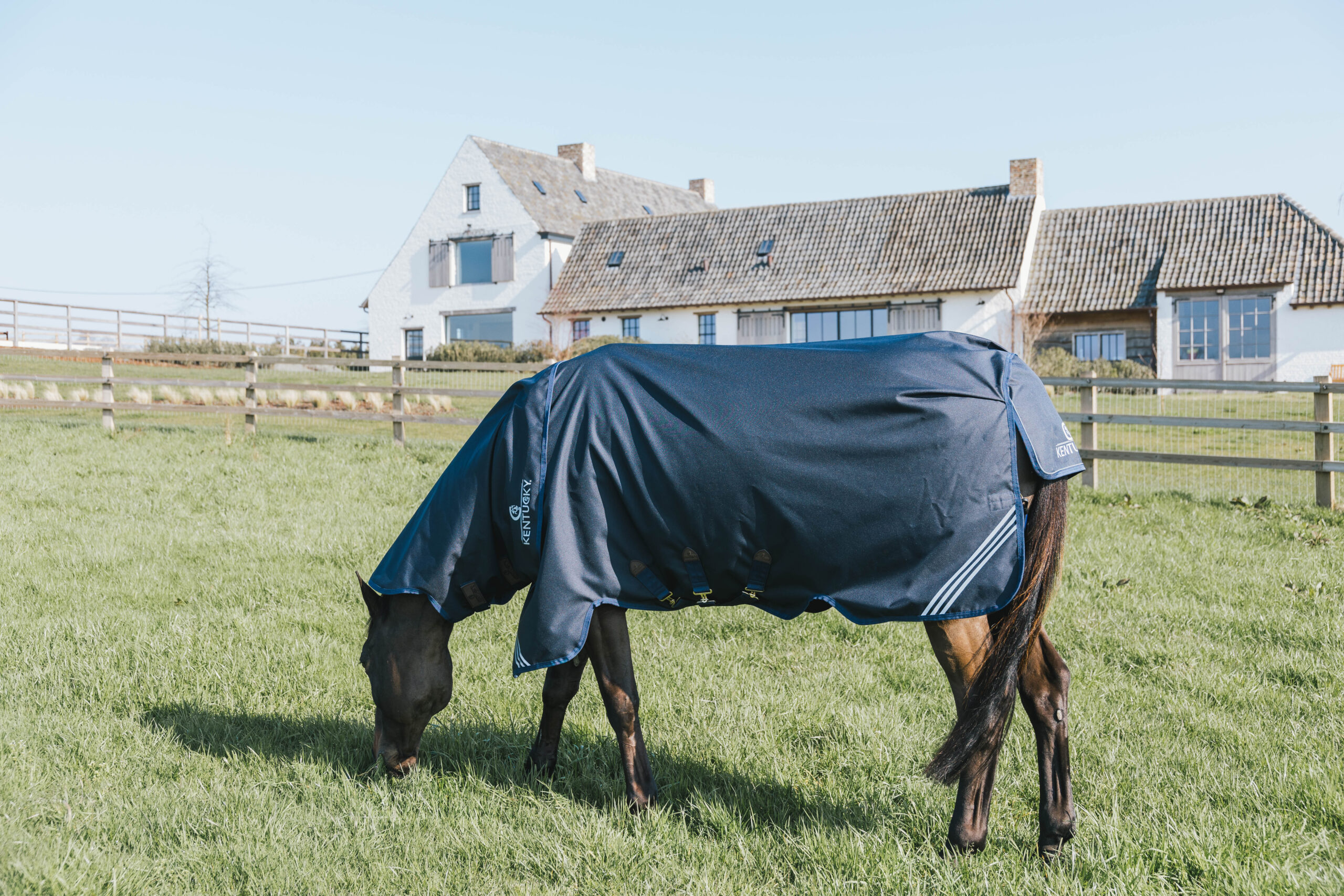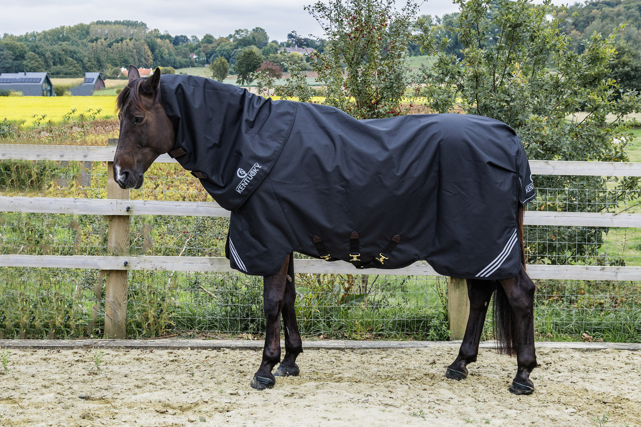 Kényelmes csatokkal és 3 hasi pánttal ellátott Kentucky Horsewear All Weather Waterproof Comfort karámtakaró. Anatómiai kialakítású, tökéletesen illeszkedik és nem helyez nyomást sehol a ló testére. Igényeknek megfelelően számos méretben és vastagságban kapható. Fényvisszaverő részletekkel.