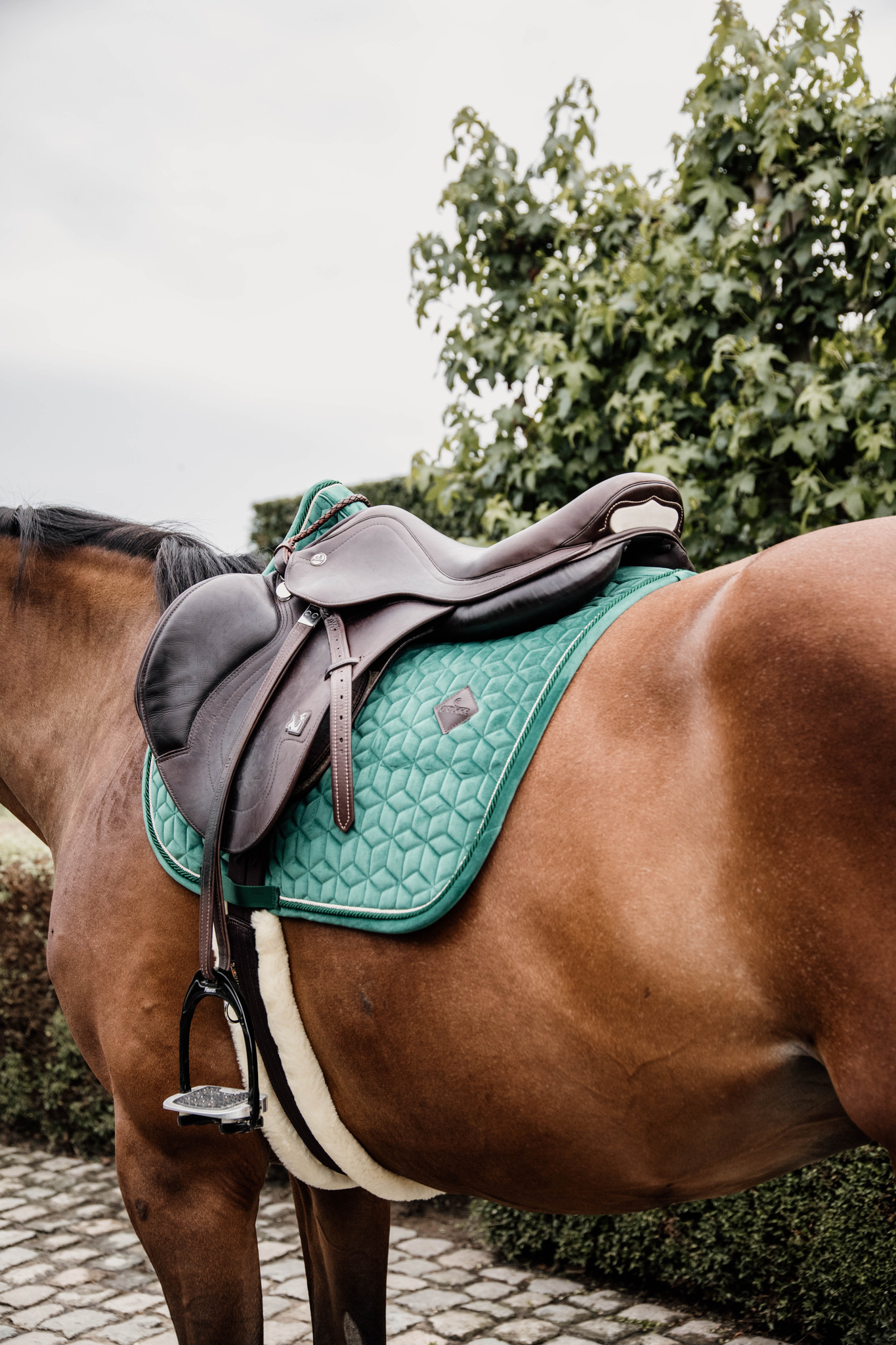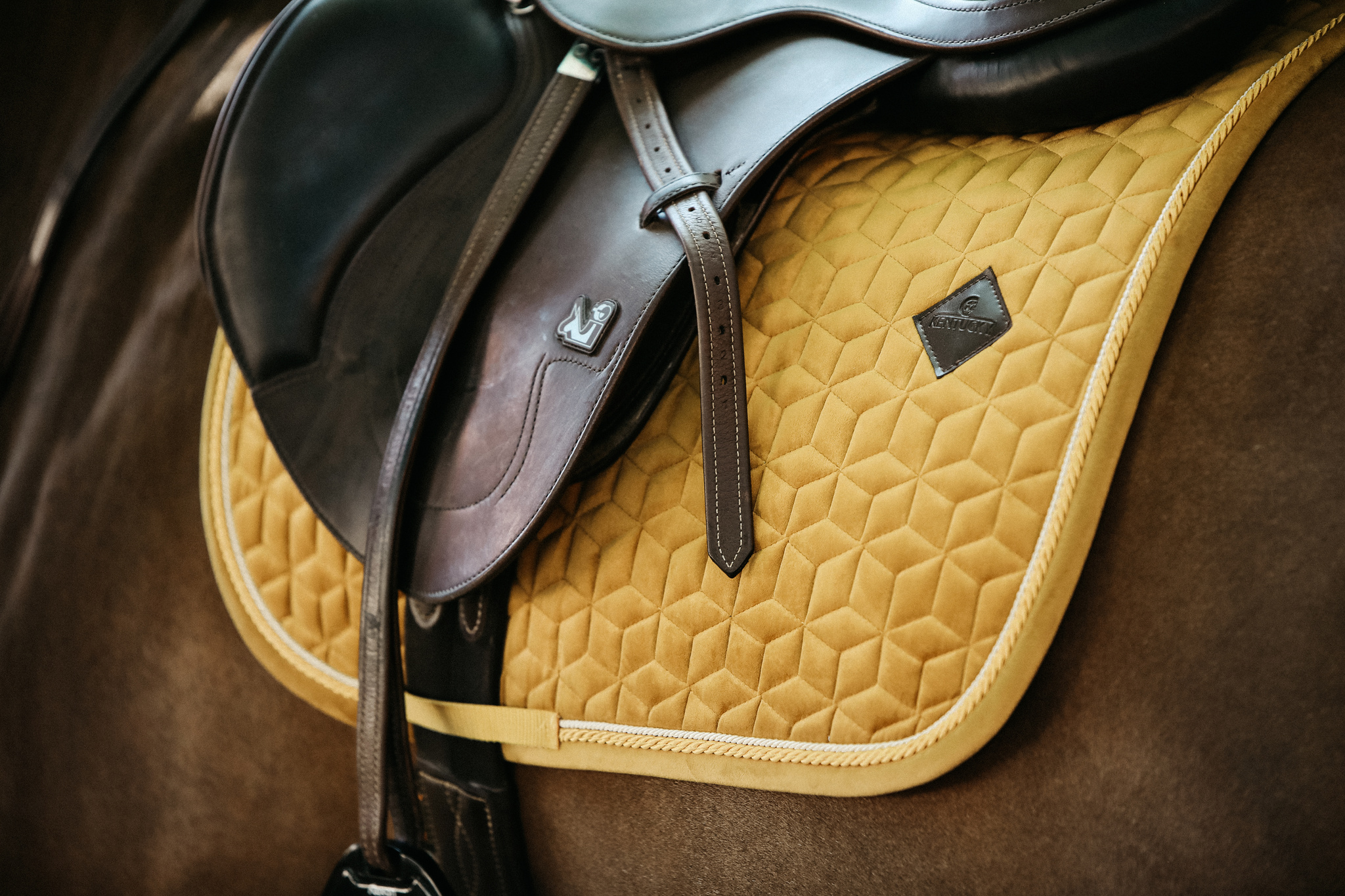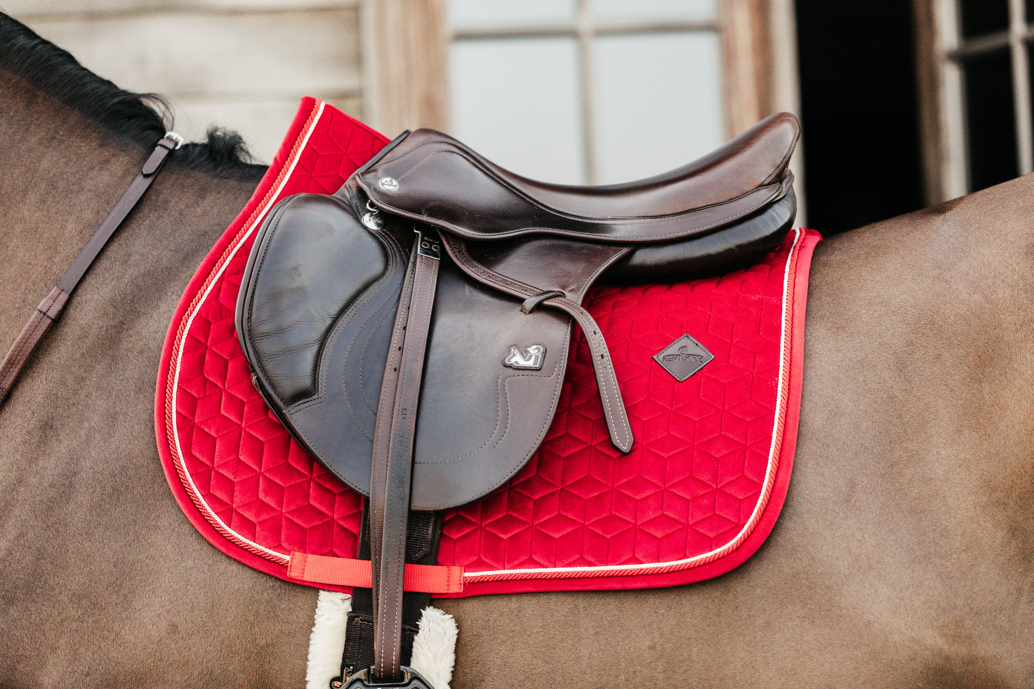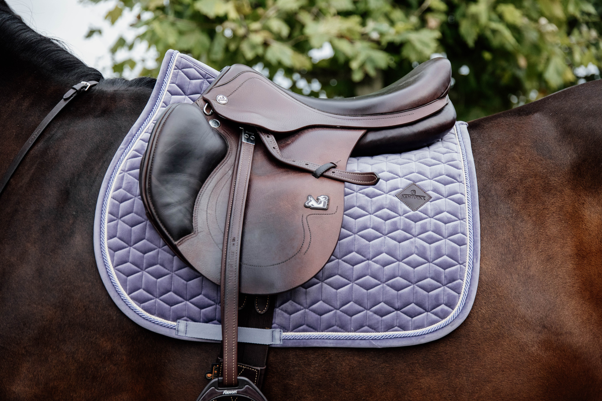 A Kentucky Horsewear Velvet bársony ugró vagy díjlovas formájú nyeregalátét puhán párnázott és tökéletesen illeszkedik a ló háta és a nyereg közé, mindeközben védi a hátat a kidörzsöléstől.