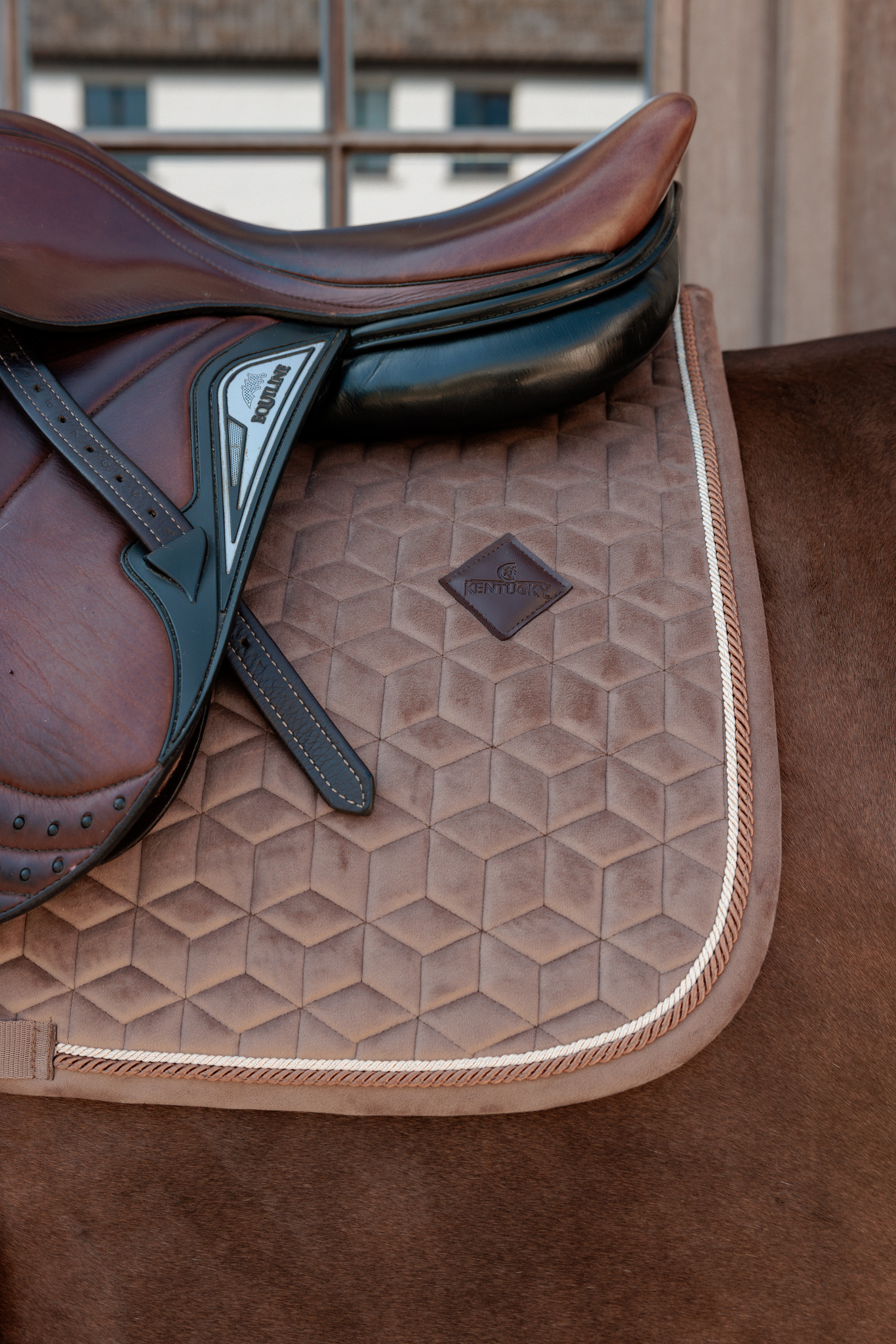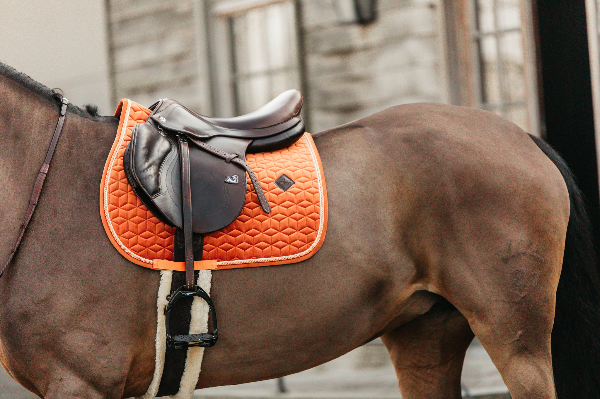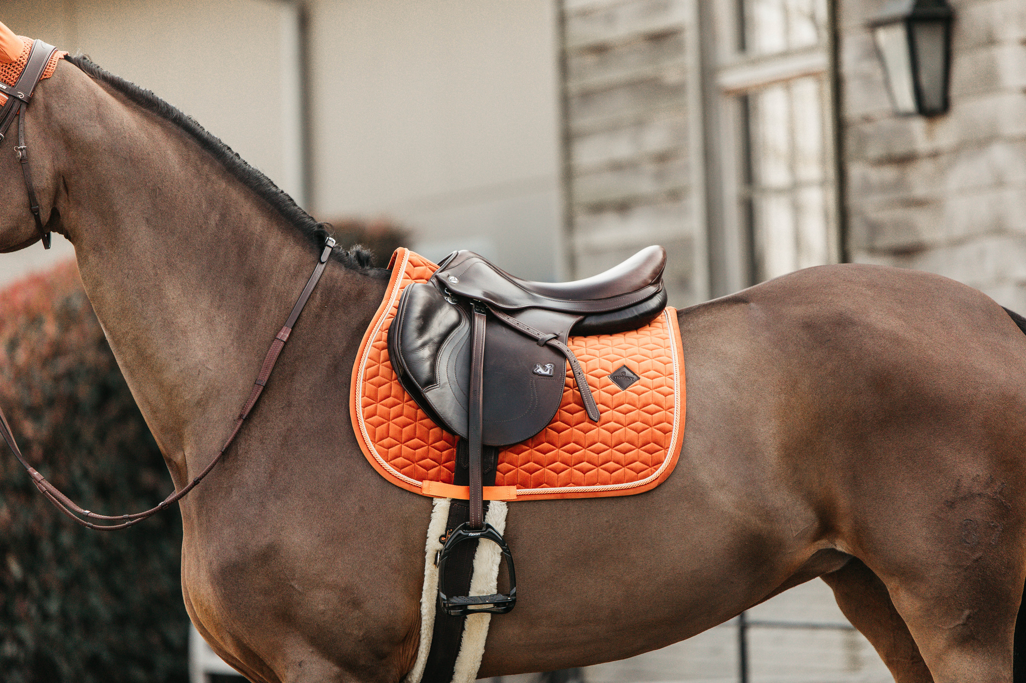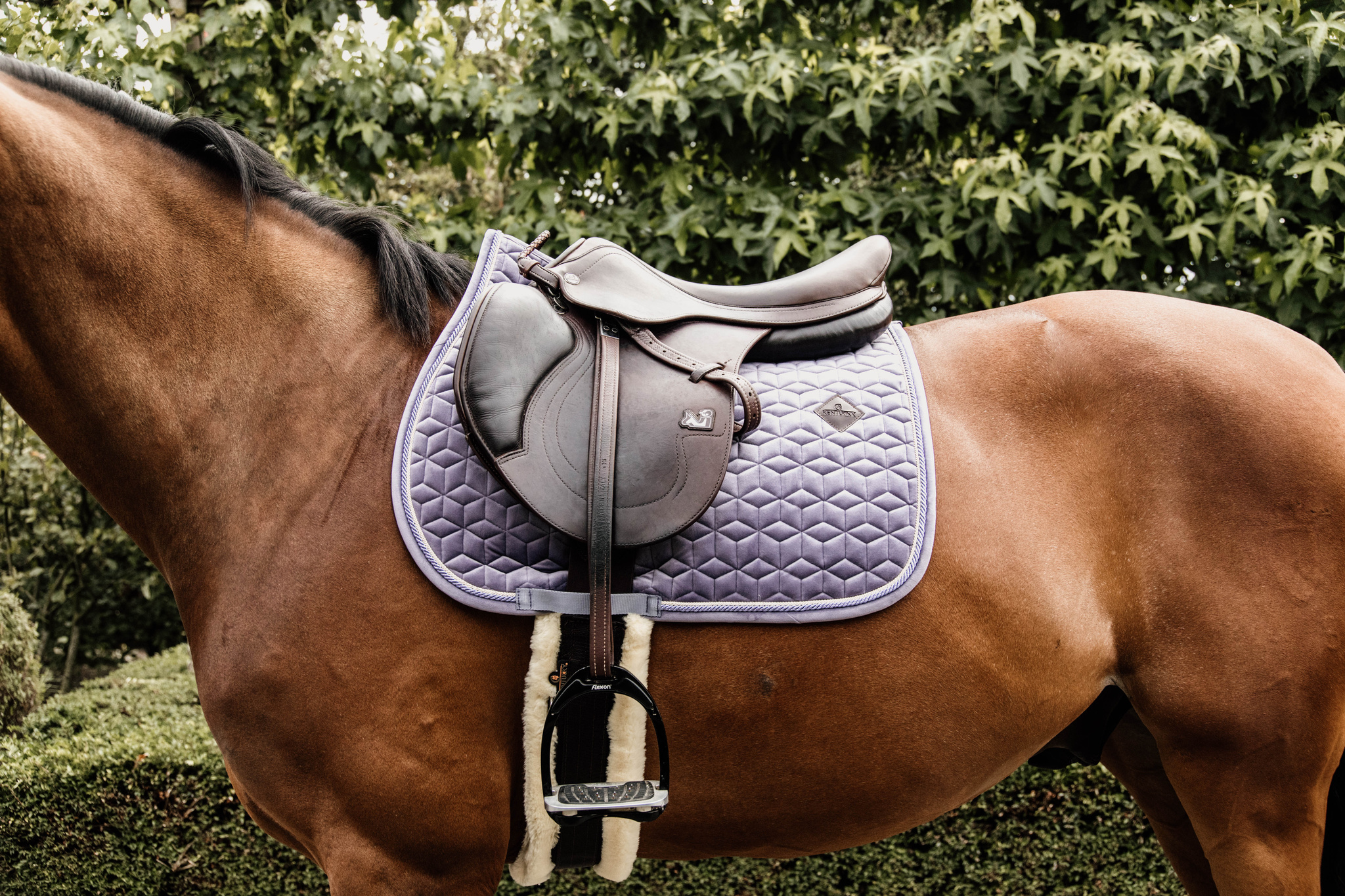 A Kentucky Horsewear Velvet bársony ugró vagy díjlovas formájú nyeregalátét puhán párnázott és tökéletesen illeszkedik a ló háta és a nyereg közé, mindeközben védi a hátat a kidörzsöléstől.