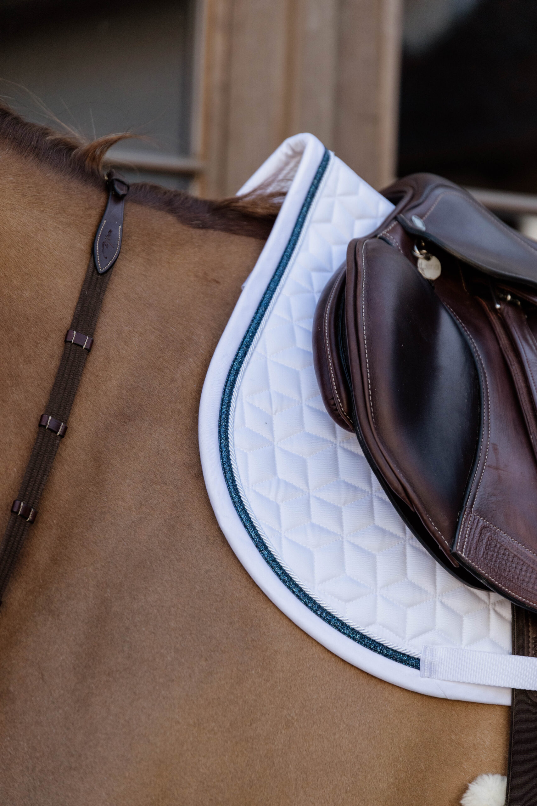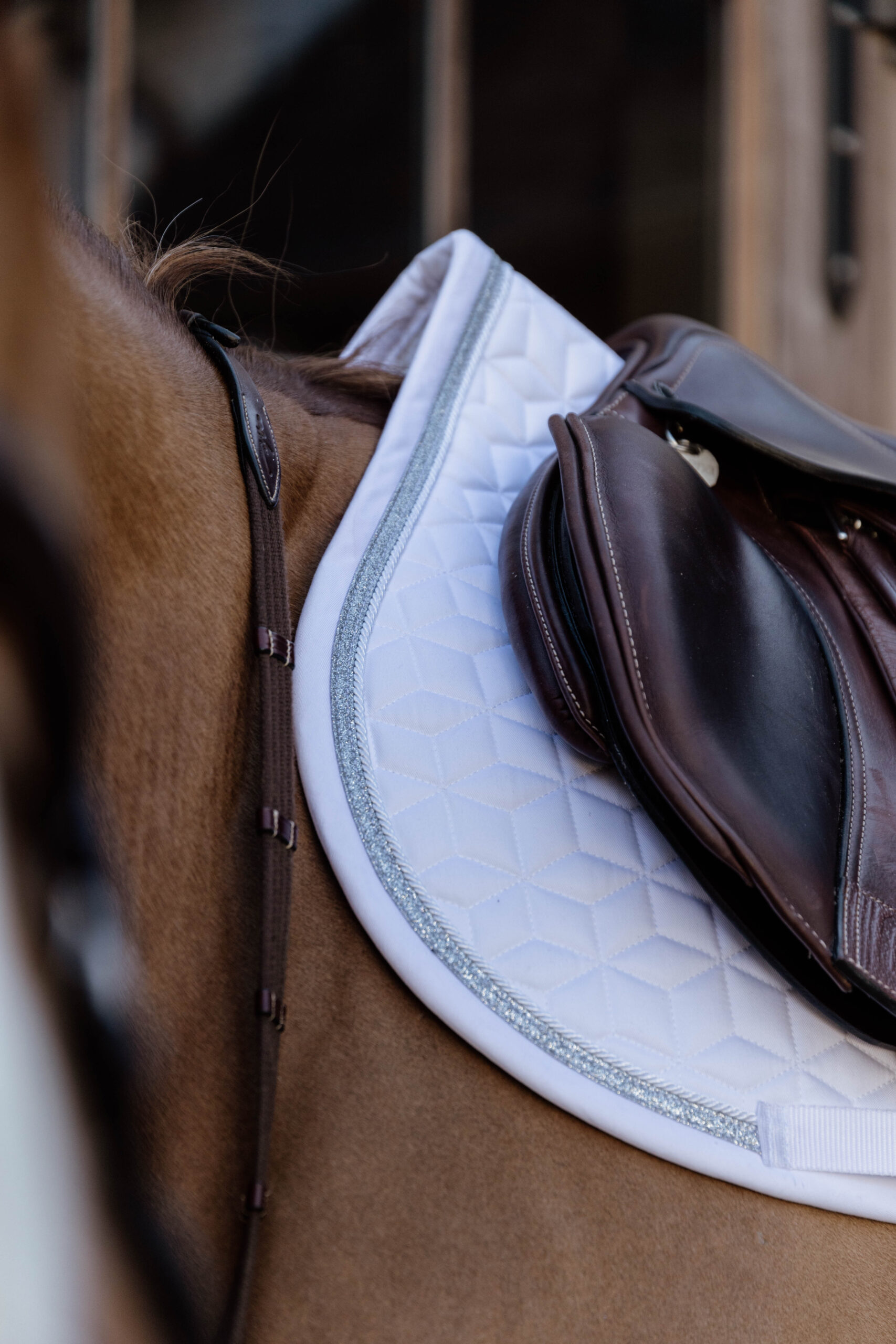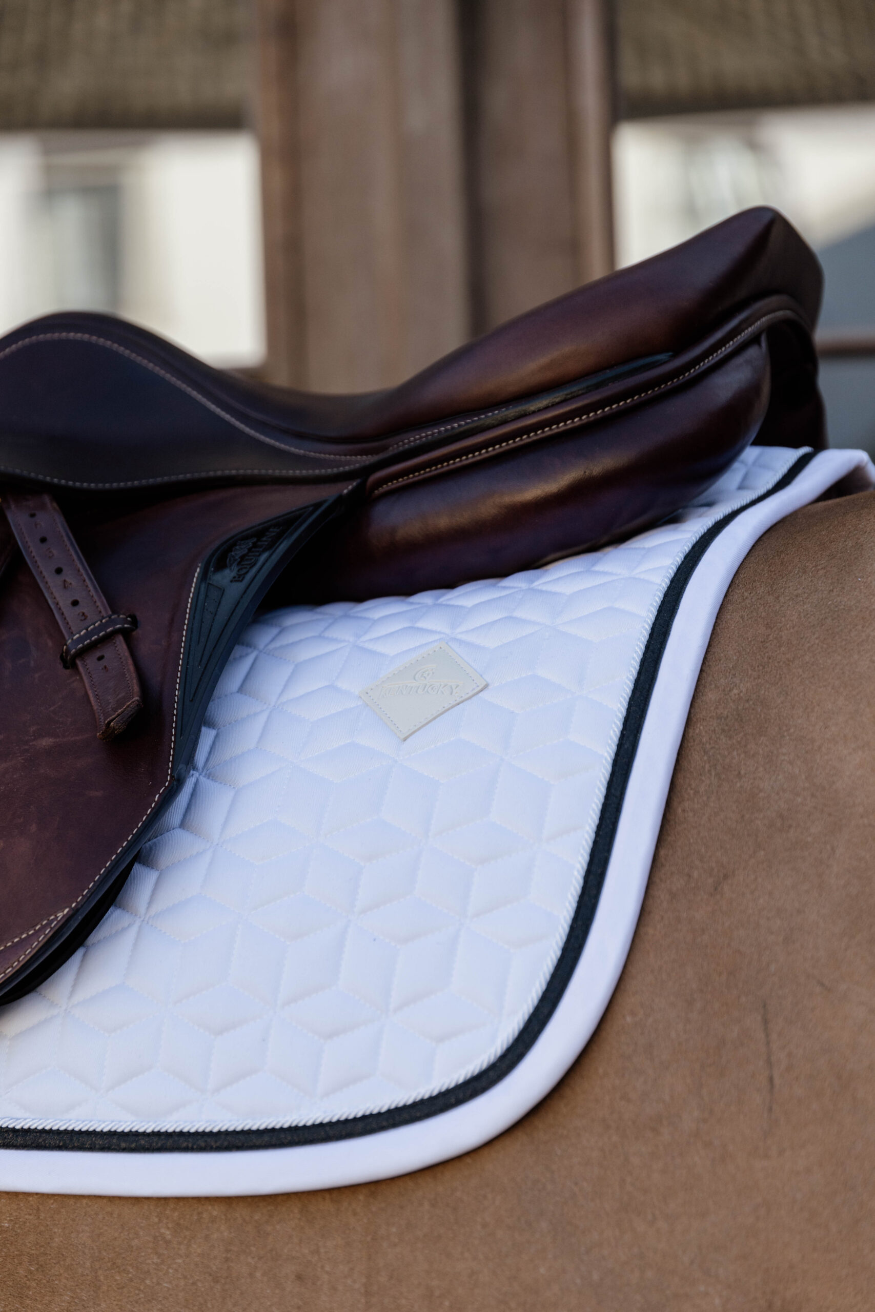 A Kentucky Horsewear Glitter Rope nyeregalátét puhán párnázott és tökéletesen illeszkedik a ló háta és a nyereg közé, mindeközben védi a hátat a kidörzsöléstől. A Kentucky nyeregalátét egyedi csillag alakú steppelésű, fantasztikus csillogó szegéllyel. Nincs zavaró tépőzár, csak egy nejlonpánt a hevederhez való rögzítéshez. Mosógépben 30°-on mosható (szárítógépbe nem tehető).