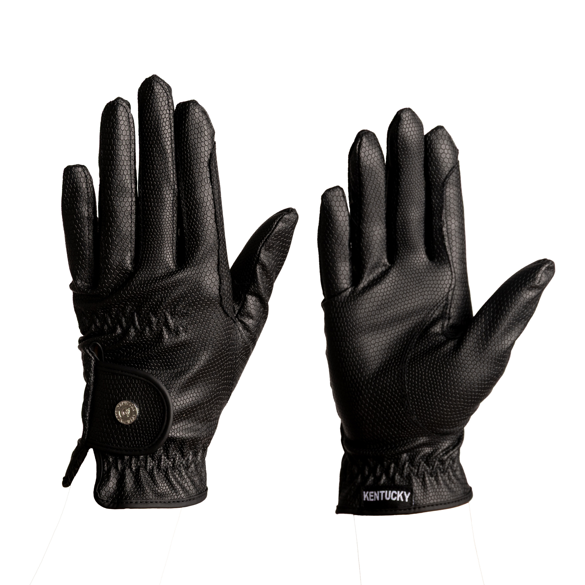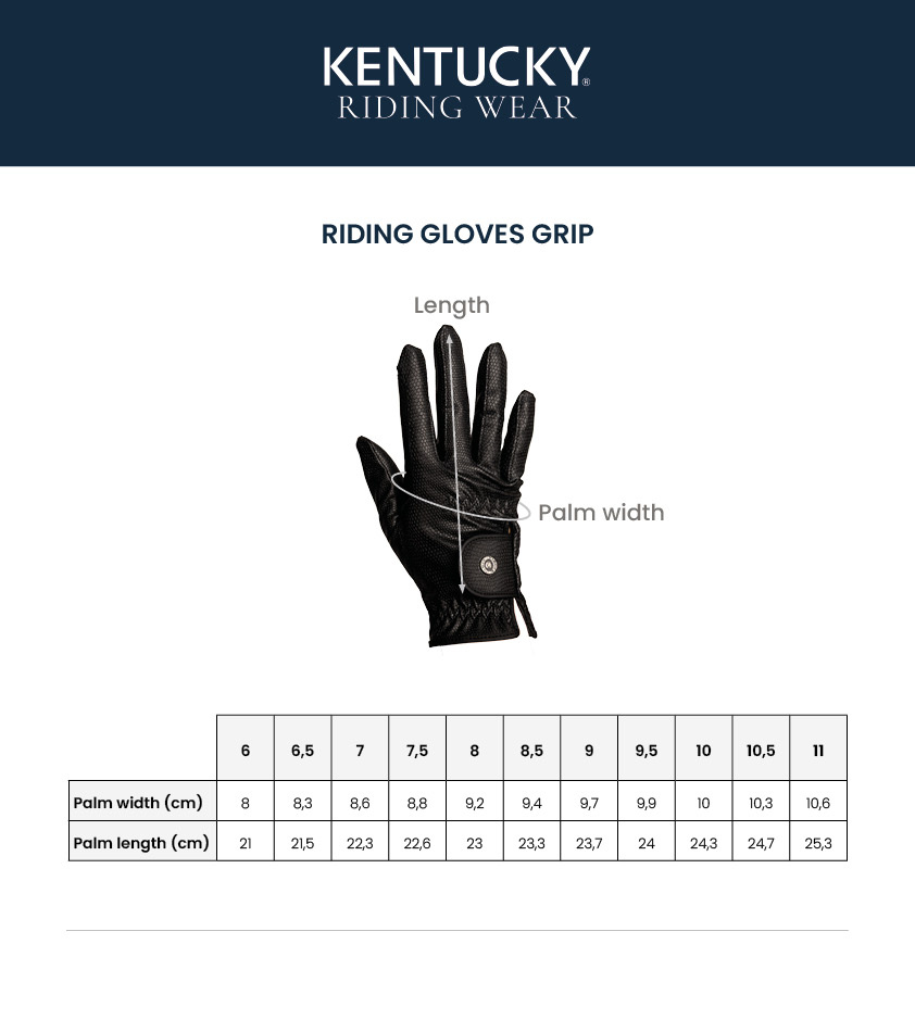 Az elegancia, tapadás és a tartósság tökéletes keveréke! A Kentucky Horsewear lovaglókesztyű olyan lovasoknak készült, akik a stílust és a teljesítményt egyaránt igénylik. Strukturált gyíkmintázatú külső rétegének köszönhetően kiváló fogást biztosít a száron, miközben megőrzik a kényelmet és a rugalmasságot. A nejlon és a poliuretán kombinációja tartós viseletet, légáteresztő képességet és kivételes ügyességet biztosít.