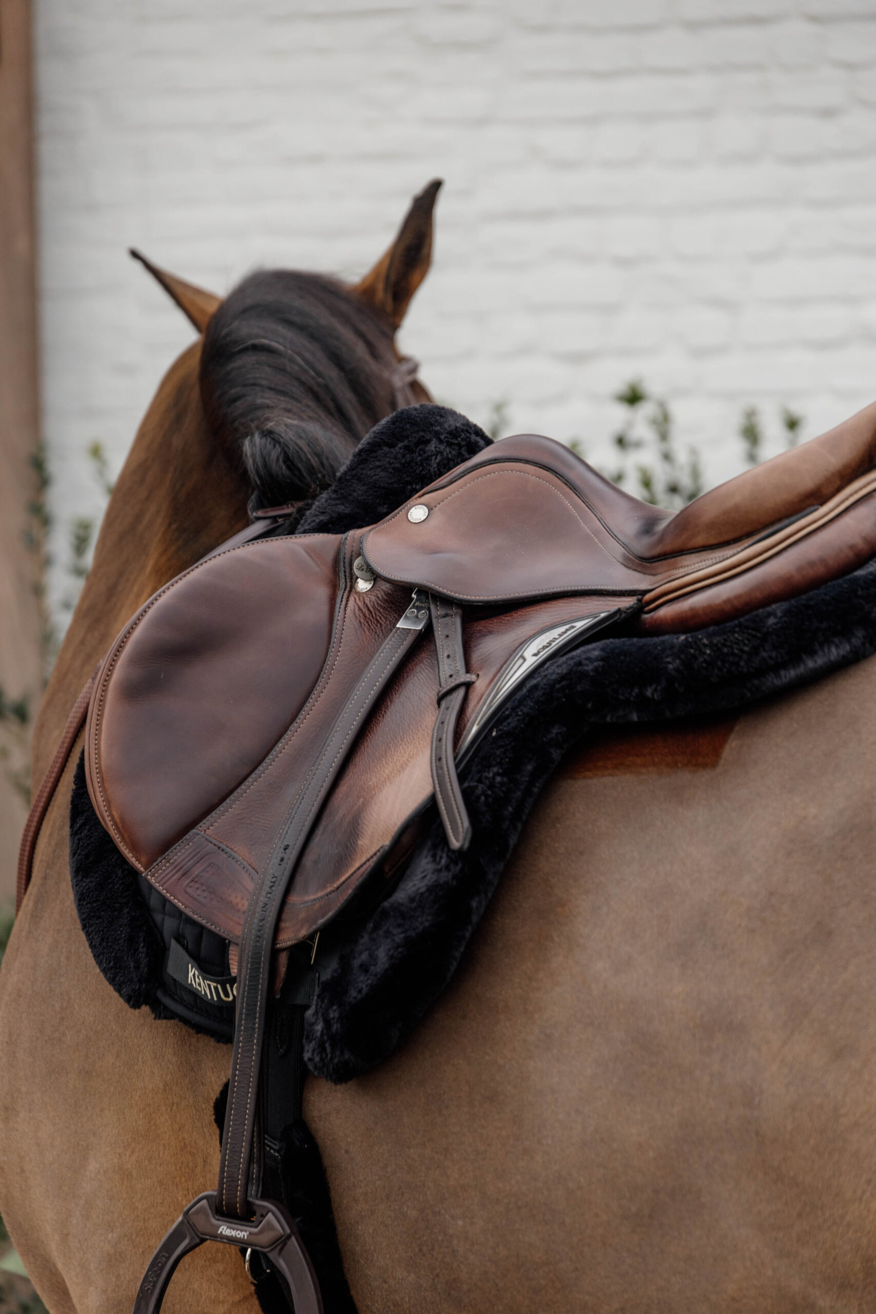 A Kentucky Horsewear Hunter vegán bárányszőr nyeregalátét csökkenti a nyomáspontokat, a túlmelegedést és megakadályozza a kidörzsölődést. Maximális kényelmet és elegáns Hunter vadász stílusú megjelenést kínál. Ideális választás vadászlovasok számára, de mindennapos használatra is javasolt.