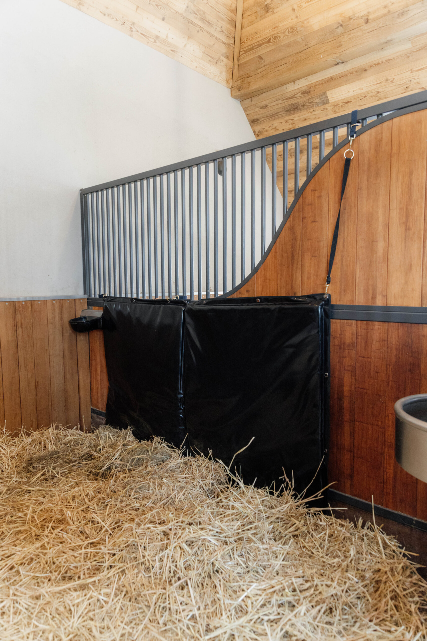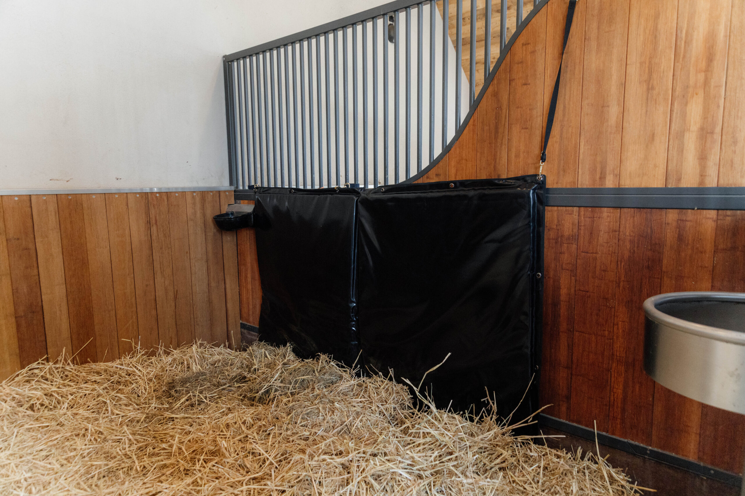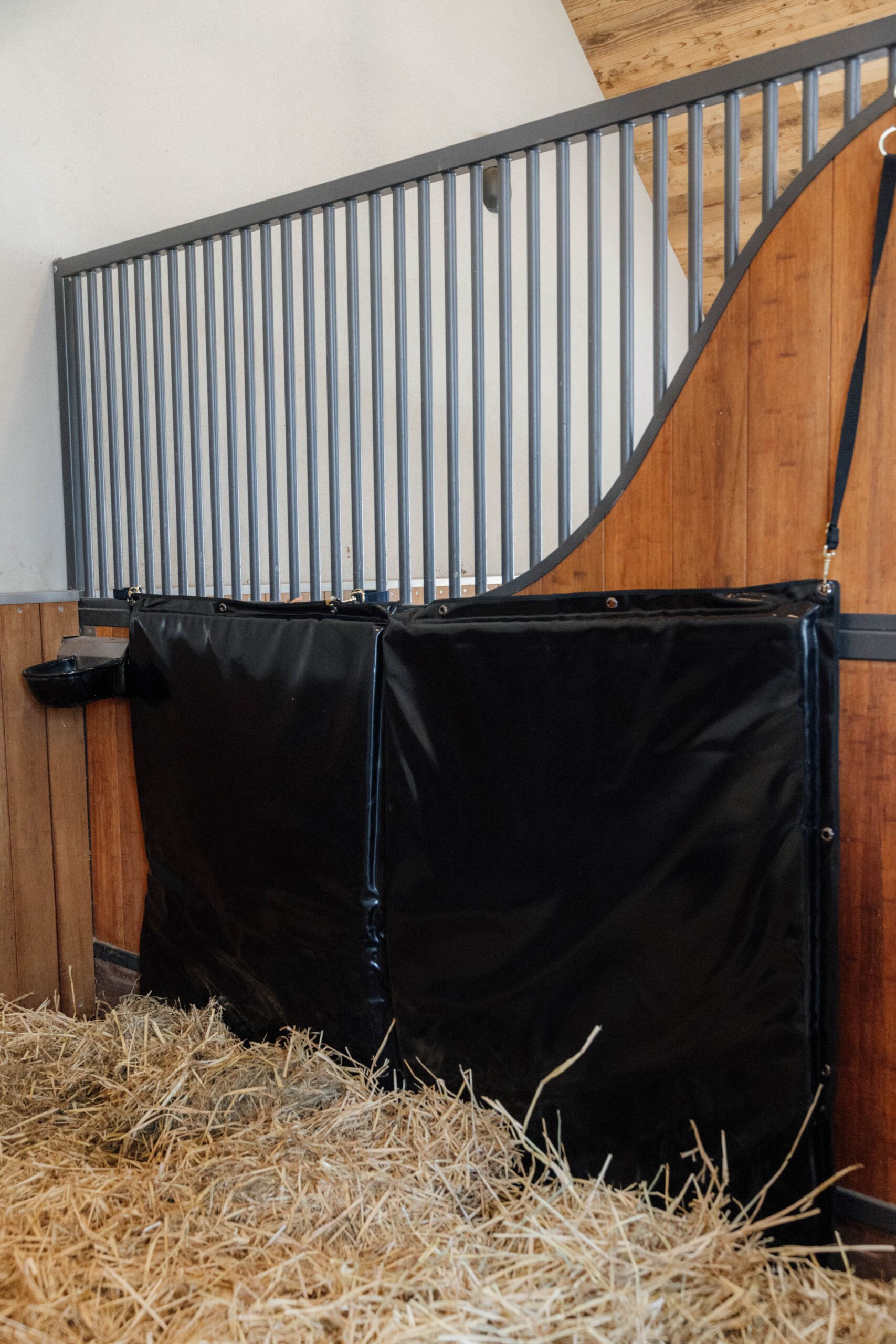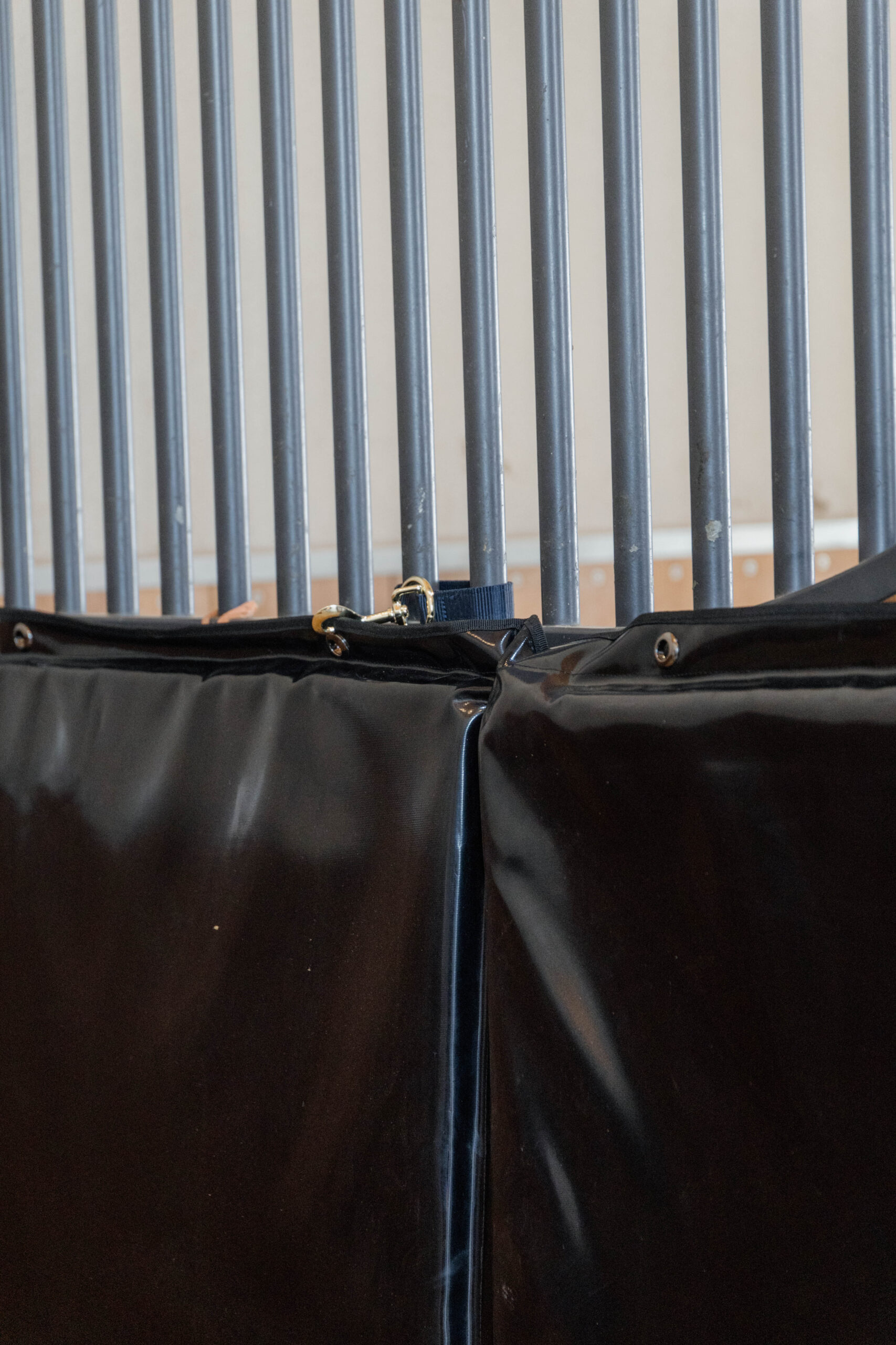 A Kentucky Horsewear lovad tökéletes védelmére törekszik. Ezért fejlesztették ki az új Kick Pad istállópárnát! Sok tulajdonos, lovas és groom használ nehéz, drága gumibetéteket, hogy megakadályozza a lovak rúgásból származó sérüléseit az istállóban vagy szállítás közben. A Kentucky egy megfizethető és könnyen használható alternatívaként kínálja Kick Pad-et. A Kick Pad különböző helyeken használható, például istállóban, lószállító furgonban vagy teherautóban. A megerősített gyűrűk segítségével bárhová rögzítheti. Sok rúgós ló jár versenyekre. A könnyű súlyú Kick Pad-et könnyen magunkkal vihetjük, így biztosíthatjuk lovunknak a szükséges védelmet. Anyaga nagyon erős, belül vízálló bevonattal, kívül pedig vízlepergető réteggel rendelkezik. A Kick Pad nagyon könnyen karbantartható. A töltete 4 cm vastag ütéselnyelő habból készült.