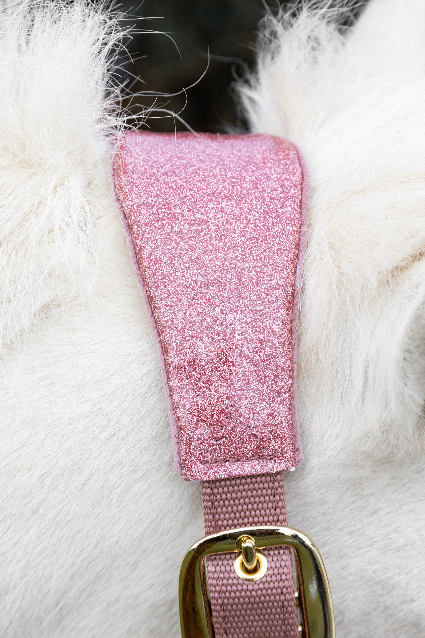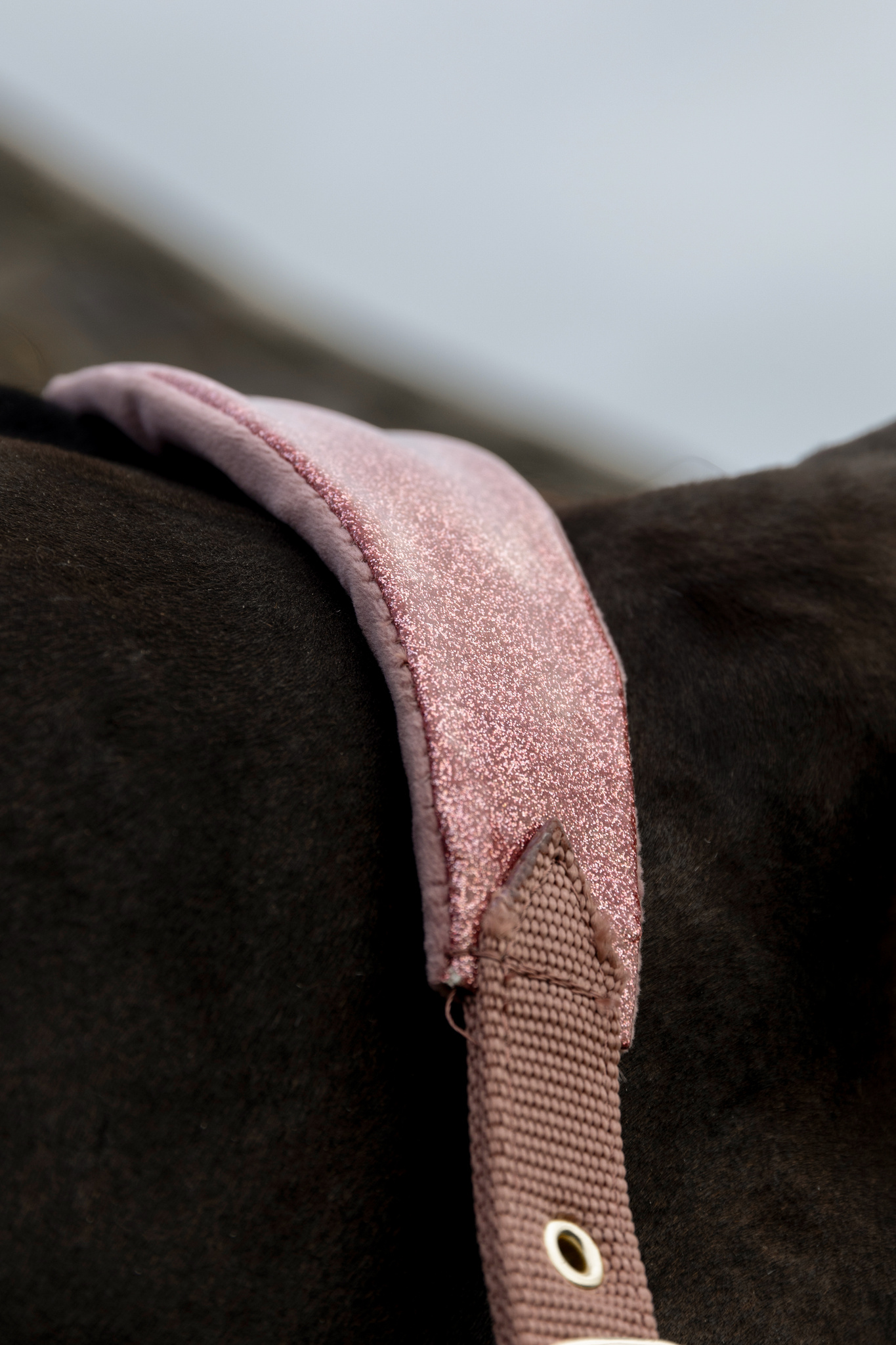 A Kentucky Horsewear Velvet bársony felszerelések rajongóinak most a Glitter csillogós kötőfék is elérhető! A kötőfék névtáblája megfordítható és személyre szabható például a ló nevével.