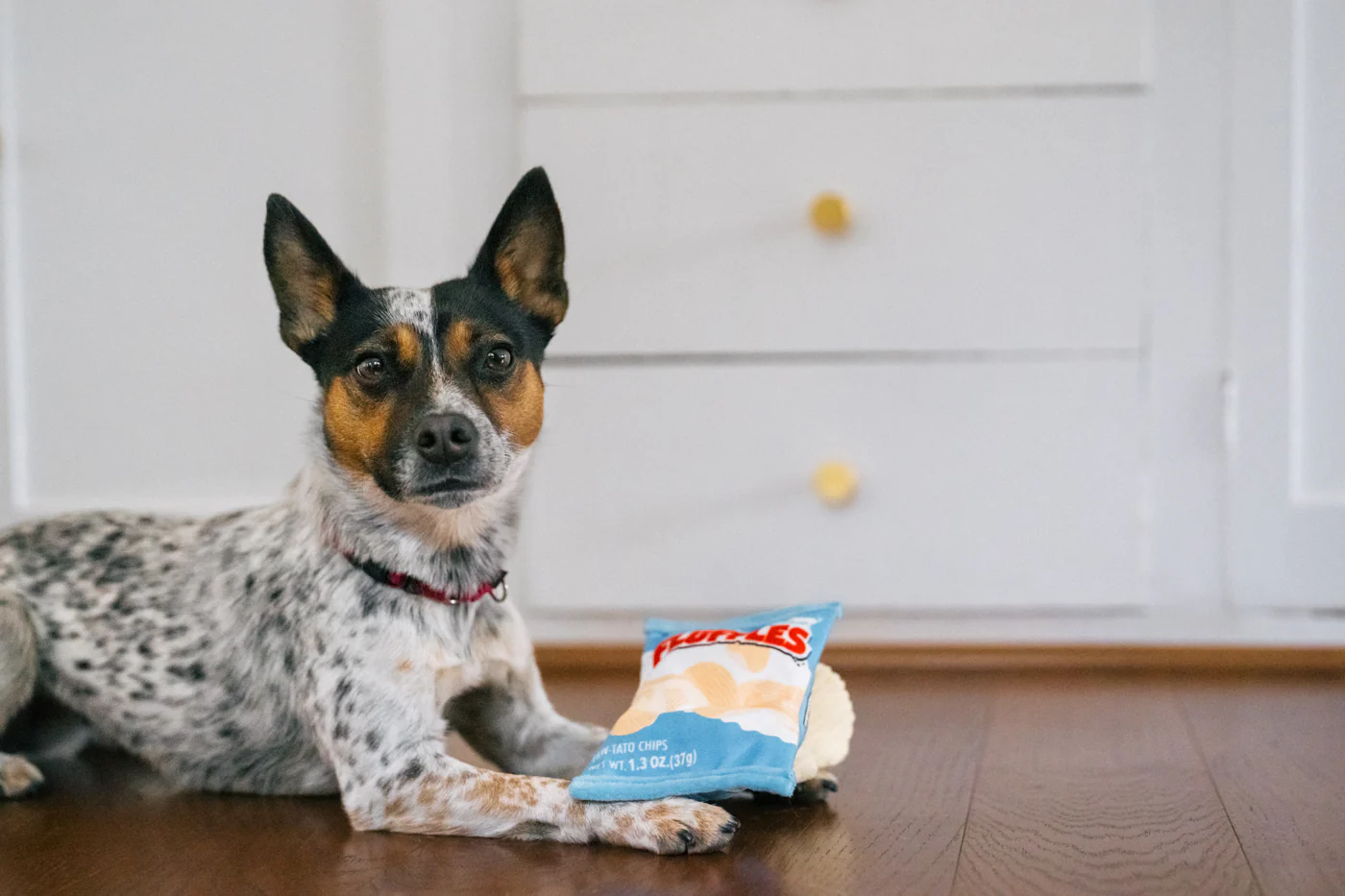 A P.L.A.Y. Snack Attack Fluffles Chips a tökéletes kutyajáték minden chips-imádó kutyusnak! Ez az ízletes chipses zacskó három csipogó chipset tartalmaz, mindegyik egy rugalmas zsinórra van rögzítve az interaktív szórakozás érdekében. Gyűrhető funkcióval, amely a chipses zacskó hangját utánozza. Ízletes, hosszan tartó csemege szőrös barátod szórakoztatására!