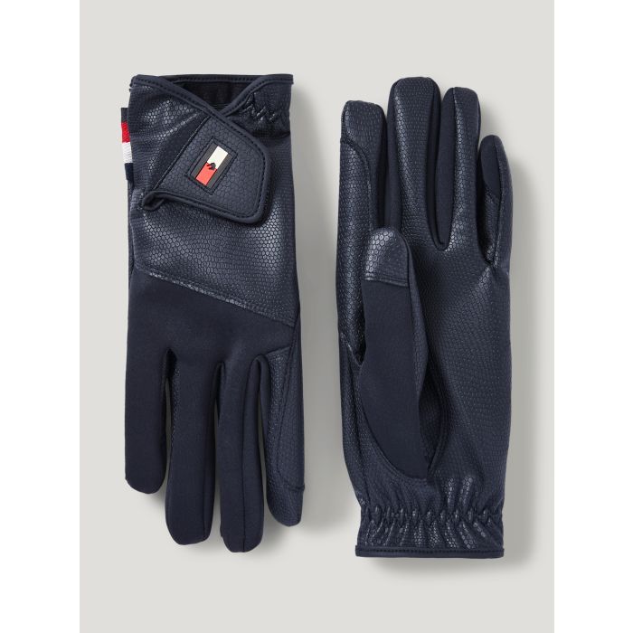 TOMMY HILFIGER Equestrian lovaglókesztyű puha, rugalmas anyagból. Úgy illeszkedik, mint a második bőr, nagy mozgásszabadságot biztosít. A belső anyag extra gripes fogást biztosít a szárakon, a speciális érintőképernyős ujj pedig lehetővé teszi a telefon használatát a kesztyű levétele nélkül. Tépőzáras záródás a tökéletes illeszkedésért, oldalán pedig egy kis TH logóval.