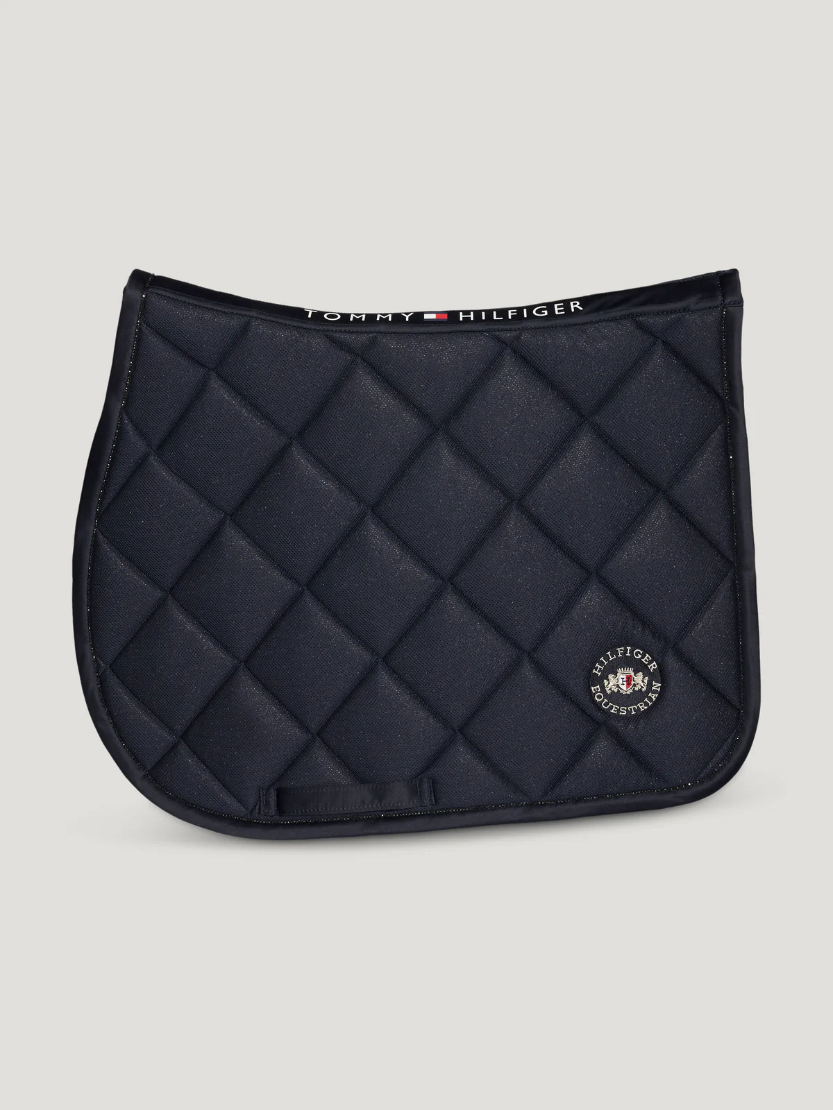Tommy Hilfiger Equestrian ugró nyeregalátét klasszikus nagyméretű rombuszmintás steppeléssel. Tommy Hilfiger címer mindkét oldalon. Puha tapintású és tökéletesen illeszkedik a lóhoz. Gofri mintás bélés lélegző és nedvességszabályozó anyaggal.