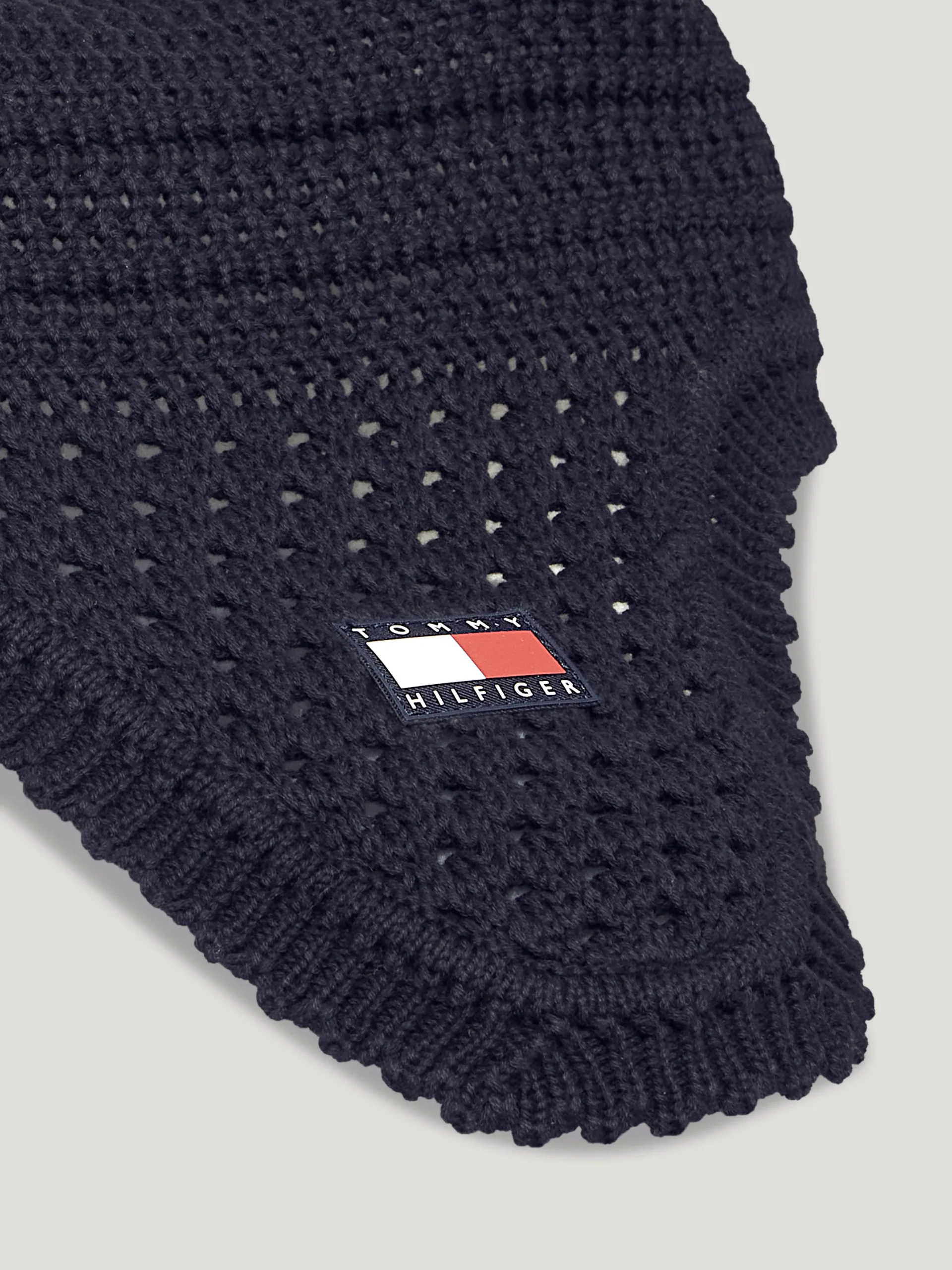 Tommy Hilfiger Equestrian fülvédő horgolt anyagból, könnyű rugalmas pamut fülrésszel. Dekoratív Tommy Hilfiger logóval.