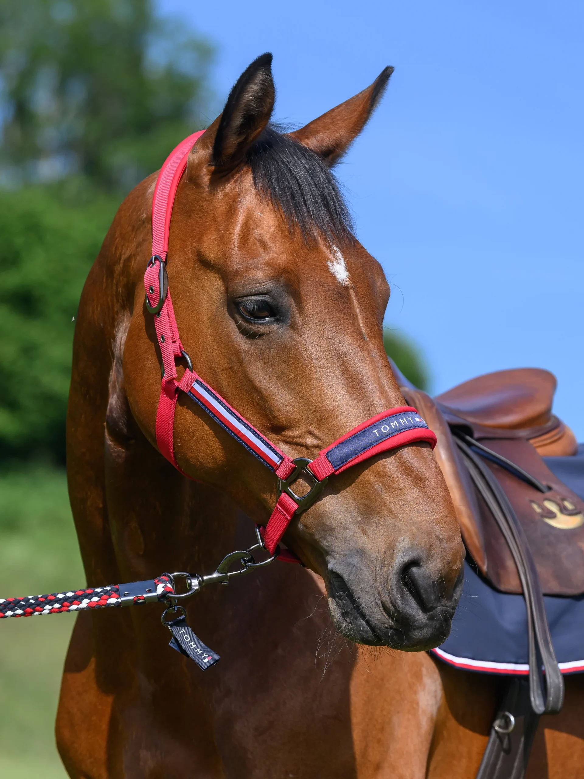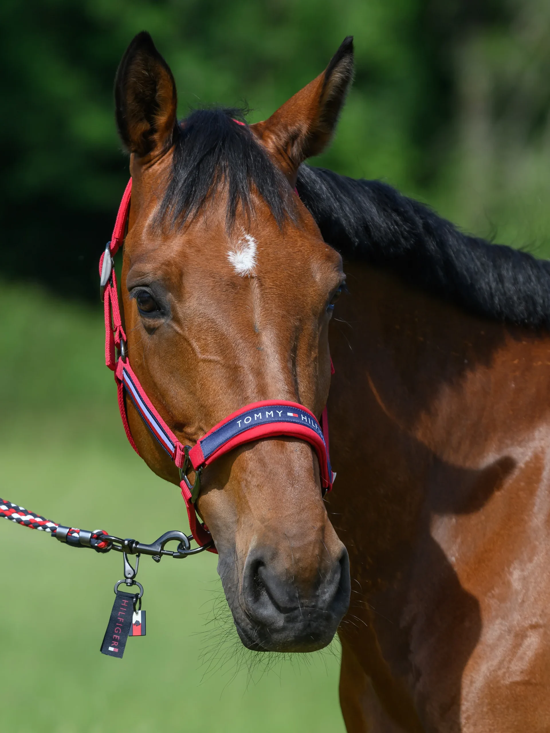 Tommy Hilfiger Equestrian kötőfék állítható gunmetal színű csattal és fém részekkel. Magas minőségű tartós és biztonságos. Klasszikus TH Global Stripe Tommy színekben. Tökéletesen illik a Tommy Equestrian lovas kollekció többi termékéhez.