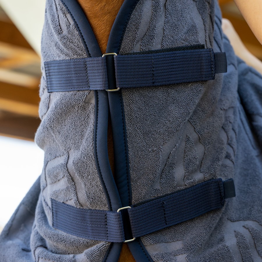 A Quick-Dry takaró levehető, szilikonnal bevont farokszíjjal rendelkezik, amelyet gyorsan meg lehet tisztítani folyó vízzel leöblítve.