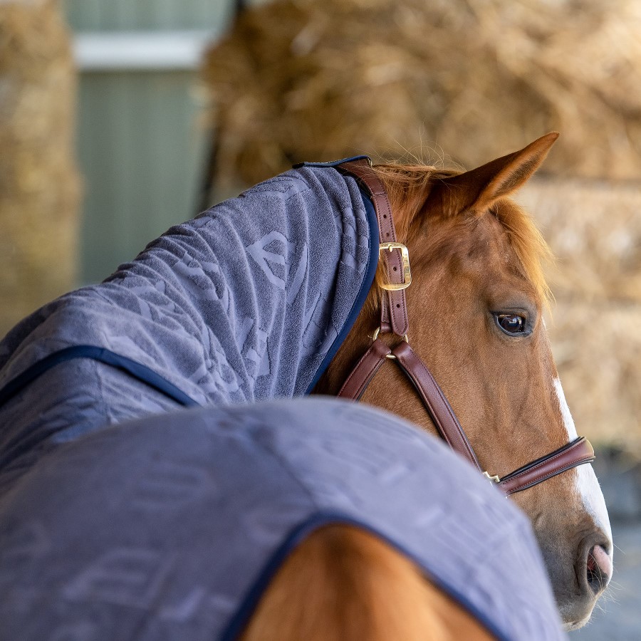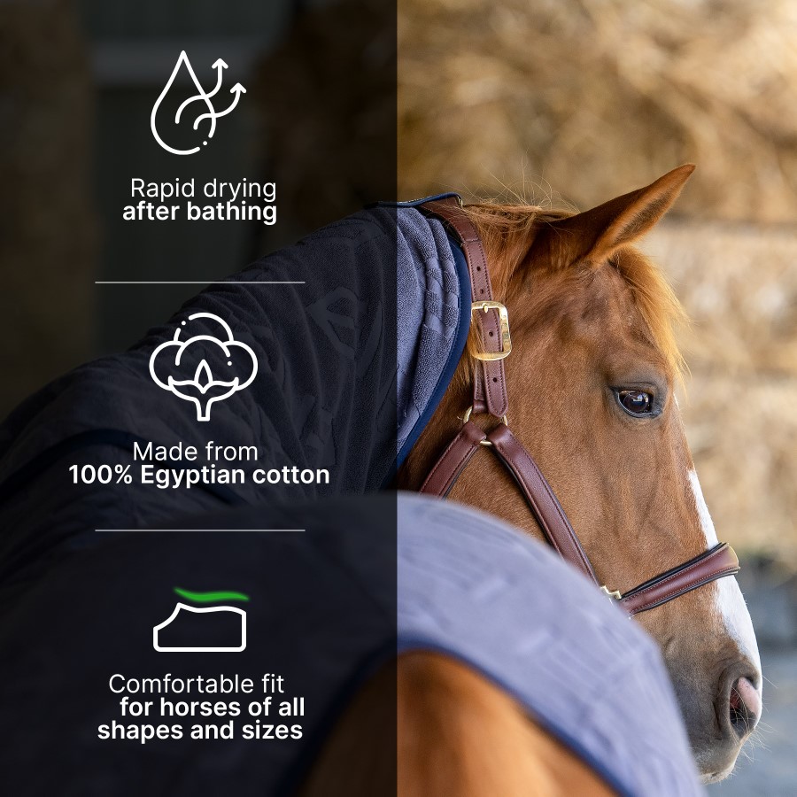 Figyelem! Nem javasoljuk, hogy a ló ebben a takaróban hempergőzzön. Bár az egyiptomi pamut nagyon ellenálló a nyúlással és a bolyhosodással szemben, mégis elszakadhat.